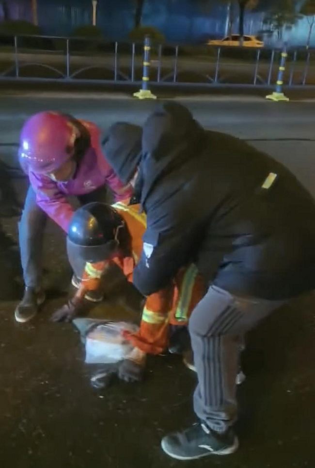 这样的责任与担当,在顺丰同城骑士群体中并非个例。在武汉盘龙城,骑士蒋文杰路遇一起交通事故,见一名环卫工人受伤坐在马路中央。当时车流密集,现场存在二次事故风险,蒋文杰立即停车上前,在路人协助下将伤者搀扶至路边安全区域。事后,他还积极配合警方,以目击者身份协助说明现场情况,全程沉着稳妥,展现出骑手群体的优秀品质与社会责任感。为表彰其善举,顺丰同城给予500元奖励。